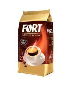 Dane produktowe Fort Kawa palona mielona 400 g Ziarno Fort to kawa mielona, która powstała z aromatycznych ziaren kawy. Energia Zawarta w każdej filiżance porcja energii pobudzi Cię do działania. Smak Intensywny smak i niska kwasowość. Składniki: Dodatki Marka Fort...