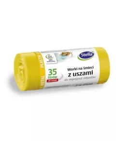 Ekologiczny worki na śmieci z uszami Stella do pakowania i segregowania odpadów plastikowych i metalowych. Żółty worek do segregacji śmieci jest przeznaczony do zbiórki odpadów z plastiku i metalu. Do żółtego worka na odpady możemy wrzucić: plastikowe butelki...