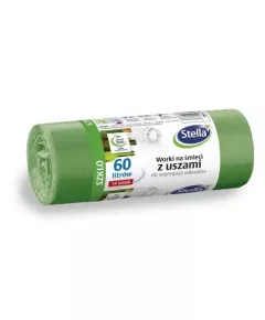 Ekologiczny worki na śmieci z uszami Stella do pakowania i segregowania odpadów szklanych. Do zielonego worka na odpady możemy wrzucić: opróżnione szklane butelki i słoiki po napojach i żywności, szklane opakowania po kosmetykach (jeżeli nie są wykonane z trwale połączonych kilku...