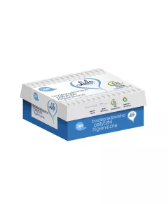 Nawilżany papier toaletowy 99% wody, 1op.-50szt. Miękki i delikatny nawilżany czystą wodą papier toaletowy dokładnie oczyszcza skórę pozostawiając przyjemne uczucie świeżości i nawilżenia. Doskonale nadaje się do oczyszczania okolic intymnych, zapobiega podrażnieniom. Biodegradowalny...