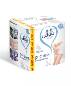 LULA Podpaski higieniczne bezzapachowe 8szt + 4 gratis Cechy: -Chłonne, miękkie i przyjemne w dotyku – włóknina extra soft. -Antyalergiczne, bez dodatku szkodliwego chloru, bez dodatku perfum. -Wszystkie użyte surowce są całkowicie bezzapachowe, technologia „without...