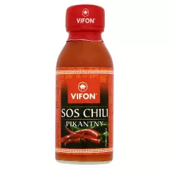 Dane produktowe Vifon Sos chili pikantny 100 ml Składniki: woda, cukier, papryka chili (20%), czosnek, sól, koncentrat pomidorowy, skrobia, regulatory kwasowości: kwas octowy, kwas cytrynowy, substancja konserwująca: sorbinian potasu, aromat Dodatki Marka Vifon Dodatkowe...