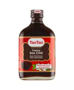 Dane produktowe Tao Tao Czarny sos chili 175 ml Składniki: woda, cukier, czerwona papryka chili (10%), czosnek (3%), sos SOJOWO-grzybowy (2,5%) (NASIONA SOI, mąka PSZENNA, grzyby w proszku (0,25%), sól, substancja konserwująca: benzoesan sodu), zielona papryka chili (2%), sól, skrobia,...