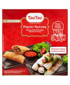 Dane produktowe Tao Tao Papier ryżowy 300 g Składniki: mąka ryżowa (99,5%), sól Dodatki Marka Tao Tao Dodatkowe informacje Michel Moran Mapa Smaków Kulinarnych inspiracji szukaj na www.TaoTao.pl Bezglutenowy Przechowywanie Przechowywać w suchym i nienasłonecznionym...