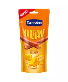 Dane produktowe Tarczyński Kabanosy nadziane cheddar 95 g Składniki: mięso wieprzowe, mięso drobiowe (mięso z kurczaka, mięso z indyka), tłuszcz wieprzowy, ser topiony Cheddar 9 % [SER, w tym Cheddar 44 %, woda, białko serwatkowe ( z MLEKA), emulgatory: polifosforany, fosforany sodu;...