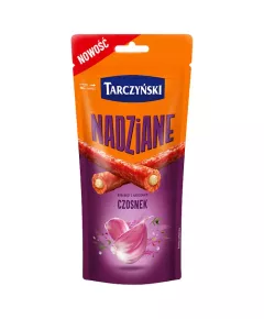 Dane produktowe Tarczyński Kabanosy nadziane czosnek 95 g Składniki: mięso wieprzowe, fasola biała konserwowa (fasola biała, woda, sól), olej słonecznikowy, skrobia, sól, przyprawy (w tym czosnek 1 %), ekstrakty przypraw, aromaty, musztarda (woda, ocet spirytusowy, GORCZYCA, cukier,...