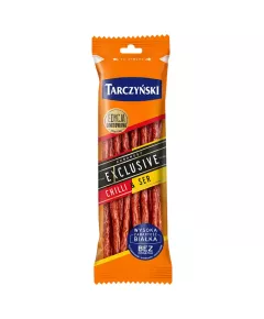 Dane produktowe Tarczyński Kabanosy Exclusive drobiowe z wieprzowiną 250 g (2 x 125 g) Zdaniem wielu najlepsza mięsna przekąska na świecie Czy wiesz, że... najwyższej jakości mięso jest źródłem: dobrze przyswajalnego białka, żelaza, witaminy B12 Możesz mieć te pyszne kabanosy zawsze przy...