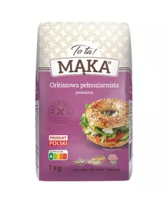 Dane produktowe To ta! Mąka orkiszowa pszenna pełnoziarnista 1 kg Składniki: Dodatki Marka Dodatkowe informacje przepisy znajdziesz na www.tota.pl www.facebook.com/polskamakatota Przechowywanie Najlepiej spożyć przed: data podana na wierzchu opakowania....