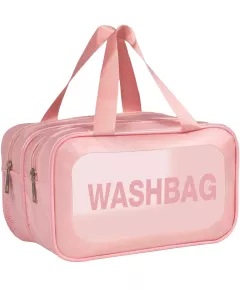 Kosmetyczka Washbag. Praktyczna i niezwykle pojemna. Doskonała na podróż samolotem, na basen i na siłownię, wodoodporna, dwukomorowa. Wykonana z mocnego i elastycznego materiału. Łatwa do czyszczenia. Transparentne panele boczne umożliwiającemu wgląd do zawartości bez konieczności otwierania....