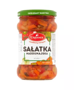 Dane produktowe Urbanek Sałatka naddunajska 680 g Składniki: woda, ogórek kiszony (19%), marchew (17%), papryka (15%), cebula (9%), ocet spirytusowy, cukier, olej roślinny rzepakowy, sól , mieszanka przypraw (zawiera GORCZYCĘ) Dodatki Marka Urbanek Dodatkowe informacje...