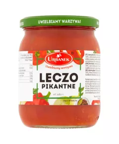 Dane produktowe Urbanek Leczo pikantne 510 g Składniki: papryka (38%), woda, koncentrat pomidorowy (12%), cebula (9%), olej roślinny rzepakowy, skrobia modyfikowana kukurydziana, cukier, ocet spirytusowy, sól, mieszanka przypraw Dodatki Marka Urbanek Dodatkowe informacje...