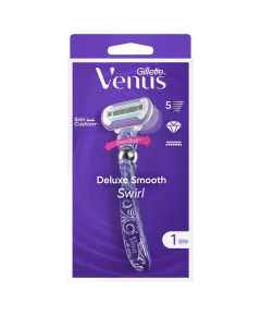 Dane produktowe Gillette Venus Deluxe Smooth Swirl Maszynka - 1 ostrze Ostrza maszynki do golenia dla kobiet Gillette Venus zostały zaprojektowane z myślą o kobiecym ciele. Maszynki do golenia dla kobiet Gillette Venus Deluxe Smooth Swirl zapewniają gładkie golenie na dłużej. Wkłady do...