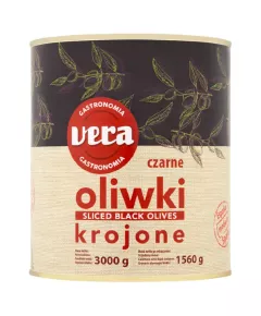 Dane produktowe Vera Oliwki czarne krojone 860 g Składniki: oliwki czarne krojone, woda, sól, stabilizator: glukonian żelazawy Dodatki Marka Vera Dodatkowe informacje Przechowywanie Przechowywać w suchym i chłodnym miejscu. Po otwarciu przechowywać w lodówce do 14...