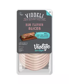 Dane produktowe Violife Viodeli Produkt na bazie oleju kokosowego plastry o smaku szynki 100 g (10 sztuk) Bez mięsa, nabiału, soi, glutenu, orzechów, konserwantów. Z olejem kokosowym i witaminą B12. Składniki: woda, olej kokosowy (20 %), skrobia, skrobia modyfikowana*, białko z...