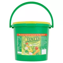 Dane produktowe Warzywko Przyprawa warzywna do potraw uniwersalna 5 kg Składniki: sól , warzywa suszone 15,1% (pasternak, marchew, cebula, czosnek, natka pietruszki, pomidory, liście SELERA, papryka), wzmacniacze smaku (glutaminian monosodowy, inozynian disodowy, guanylan disodowy),...