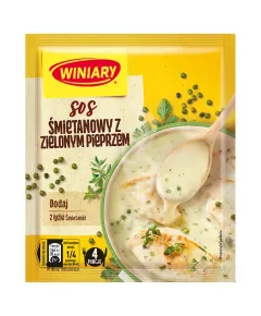Dane produktowe Winiary Sos śmietanowy z zielonym pieprzem 30 g Nestlé Jedz smacznie, żyj zdrowo Sposób przygotowania 1. Zawartość opakowania rozprowadź w 300 ml zimnej wody. 2. Doprowadź do wrzenia i gotuj 3 min na małym ogniu, ciągle mieszając. 3. Do sosu dodaj 2 łyżki śmietanki 12 % i...