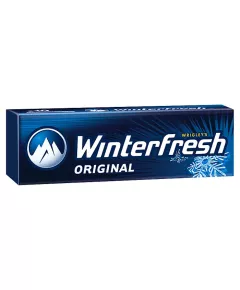 Dane produktowe Winterfresh Original Bezcukrowa guma do żucia 29 g (21 sztuk) Składniki: substancje słodzące (sorbitol, maltitol, mannitol, aspartam, acesulfam K), baza gumowa, substancja zagęszczająca (guma arabska), aromaty, substancja utrzymująca wilgoć (glicerol), emulgator...