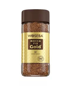 Dane produktowe Woseba Mocca Fix Gold Kawa rozpuszczalna 100 g Kawa rozpuszczalna Woseba Mocca Fix Gold to specjalnie dobrana mieszanka wysokiej jakości kaw. Mocca Fix Gold jest doskonałą kawą rozpuszczalną dla tych, którzy ponad wszystko cenią sobie zdecydowany, pełny smak i wygodę...